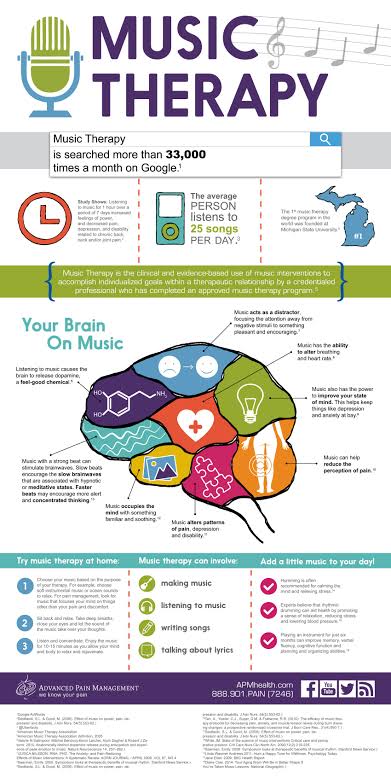Music is used for curing certain types of illness e.g depression, mental disorder. In the Holy Bible David played the lute for Saul whenever he was tormented by melancholy. Music is also played for mental patients in psychiatric hospitals.